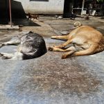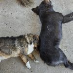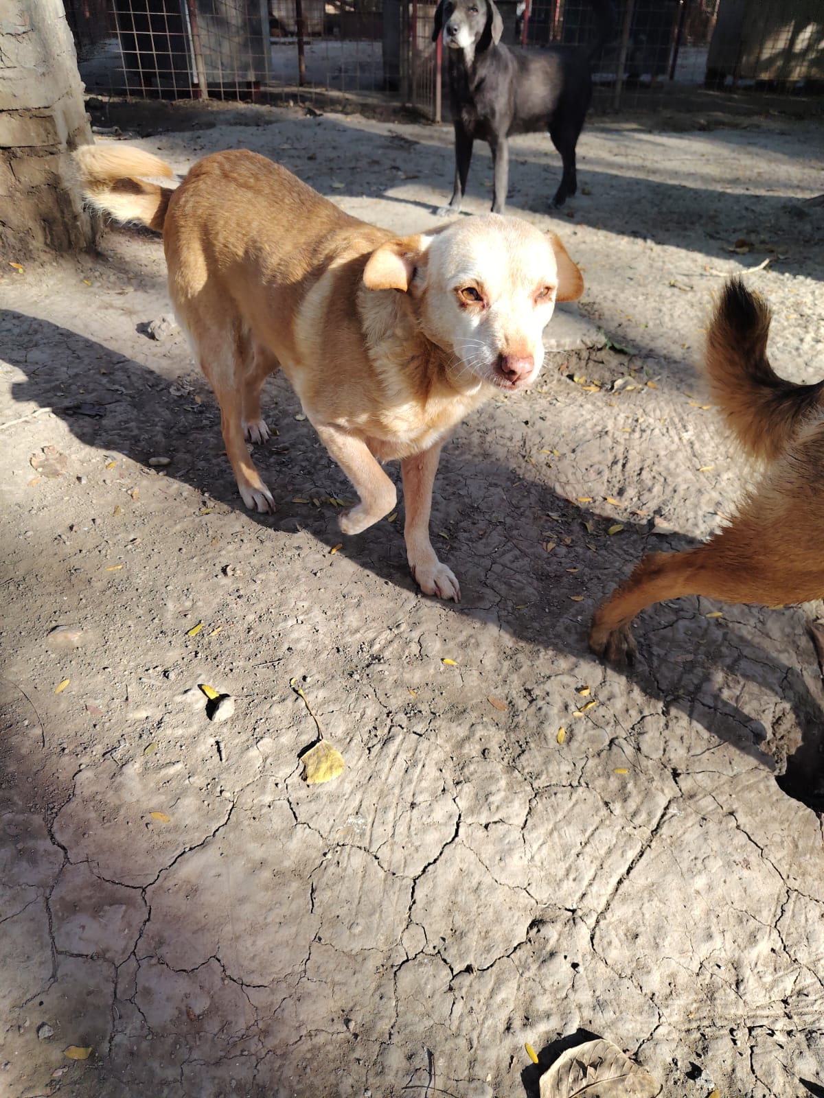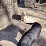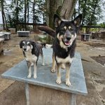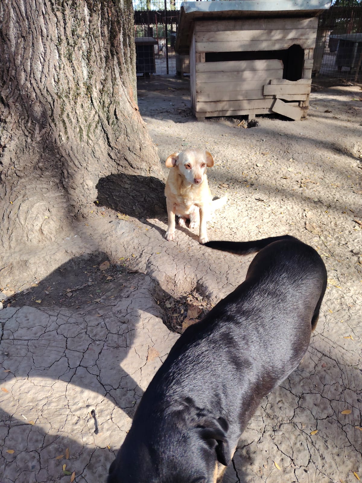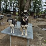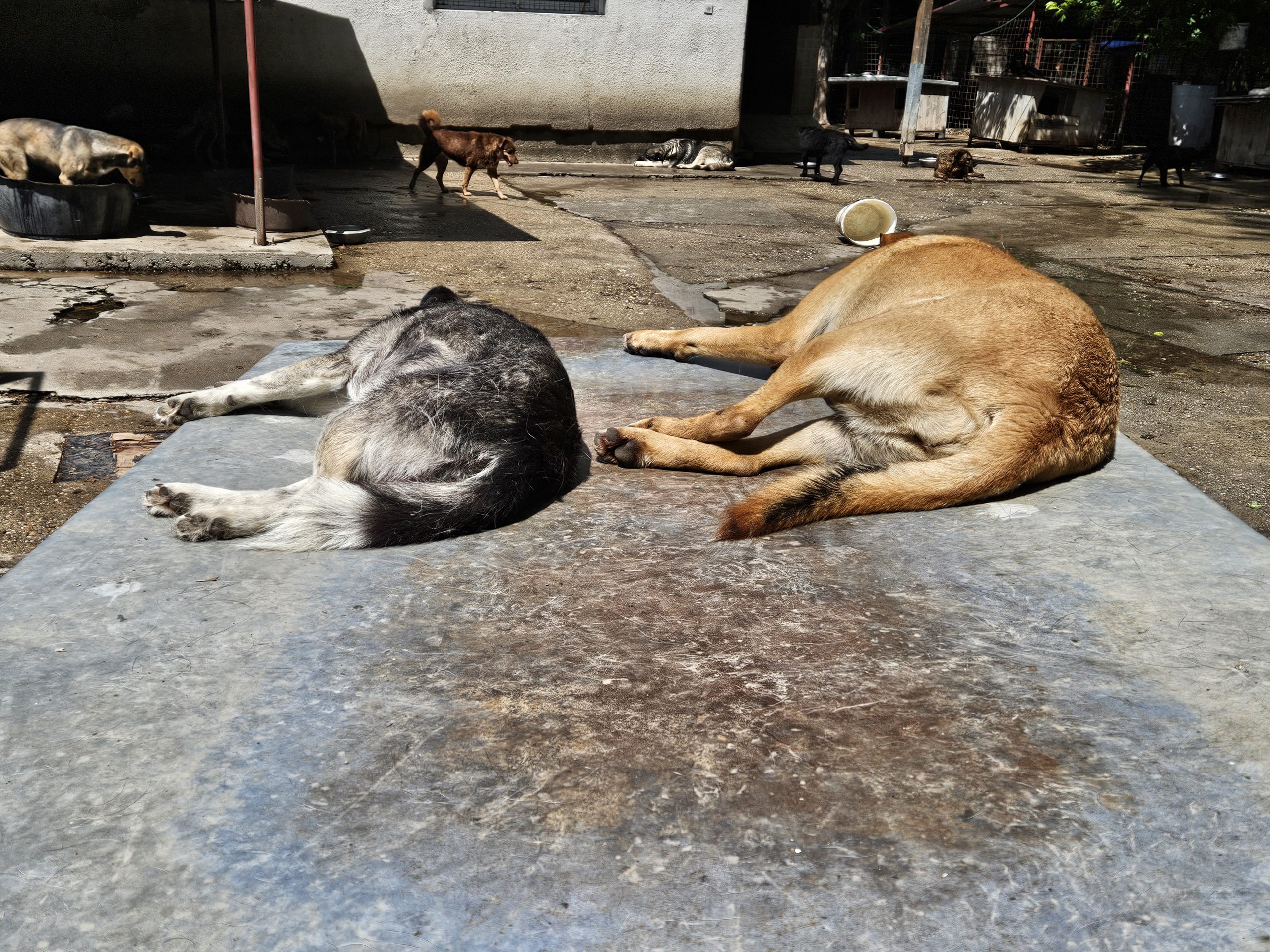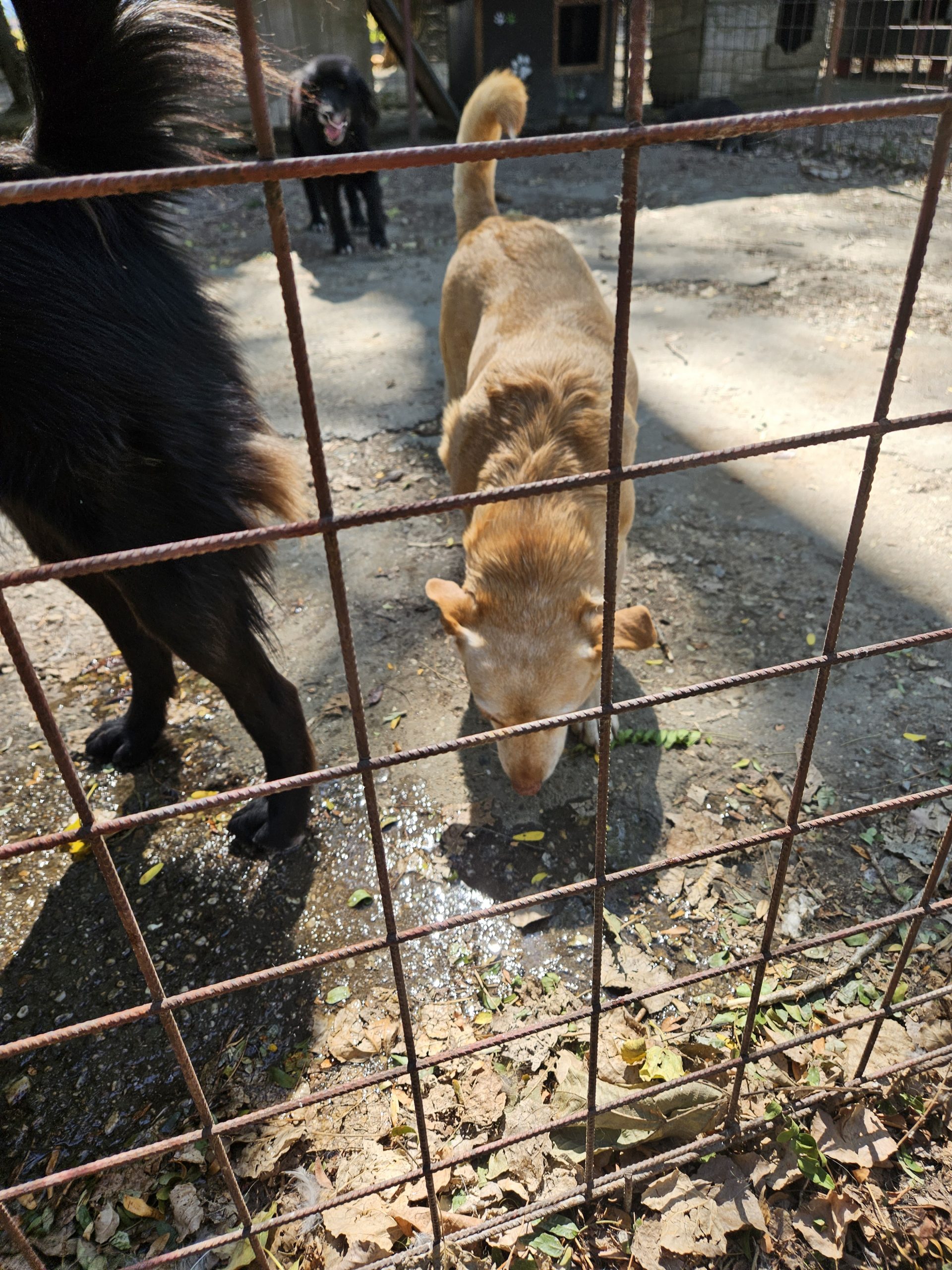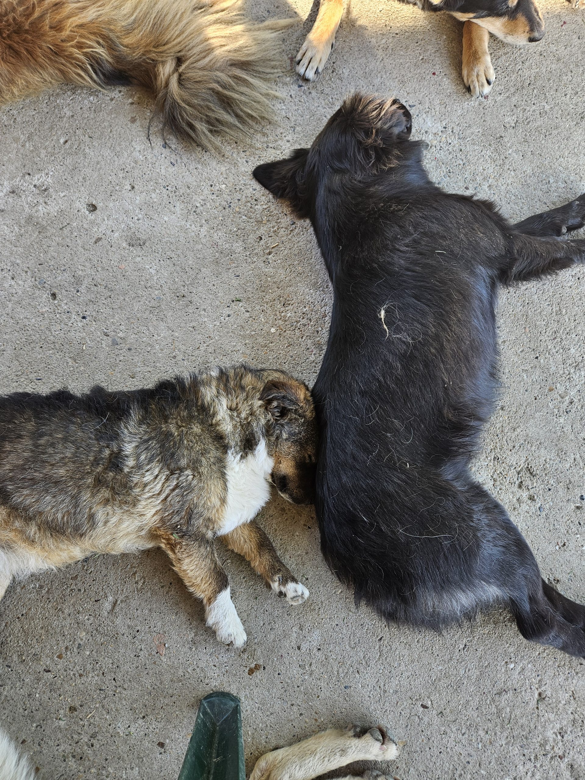 Eine Volontärin war mit einer größeren Gruppe Hunde zum Spaziergang unterwegs als sie auf die beiden trafen.