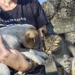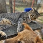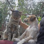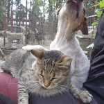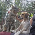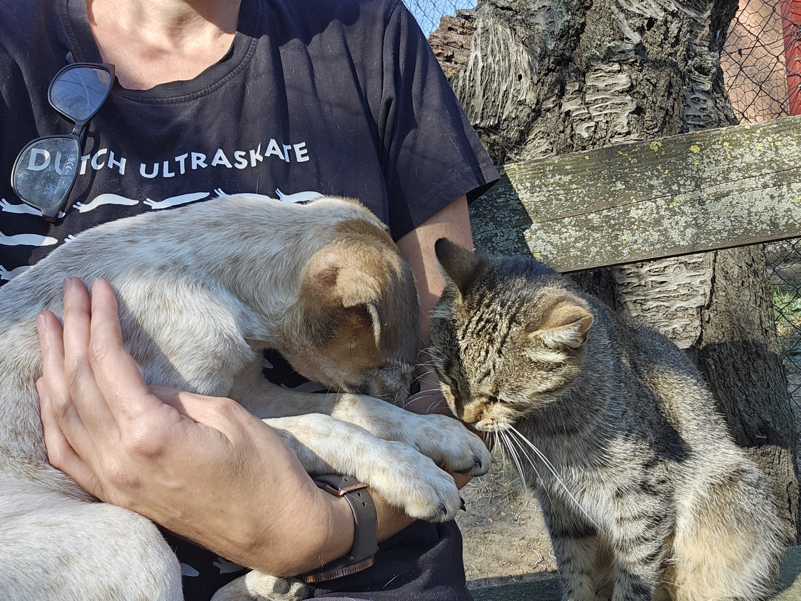 Hunde mag er meiner Meinung nach sogar lieber als andere Katzen, und er beschmust sie mit Hingabe.