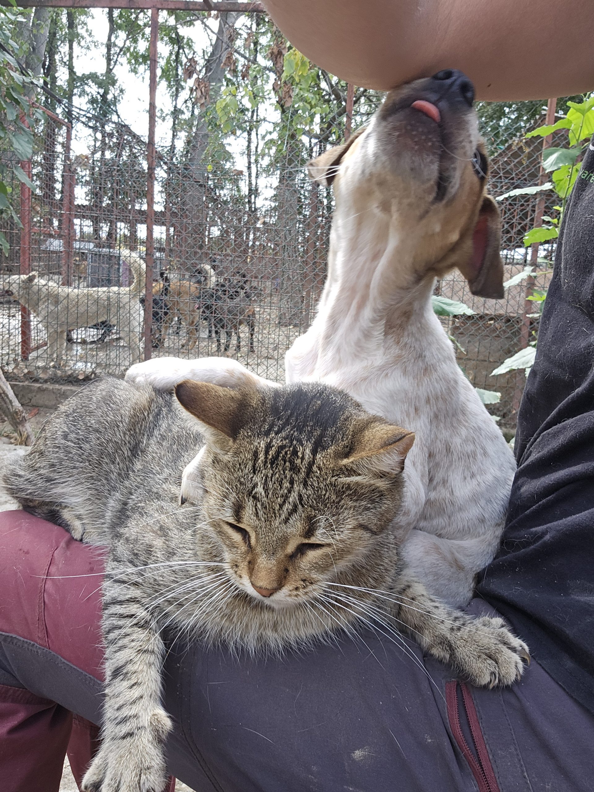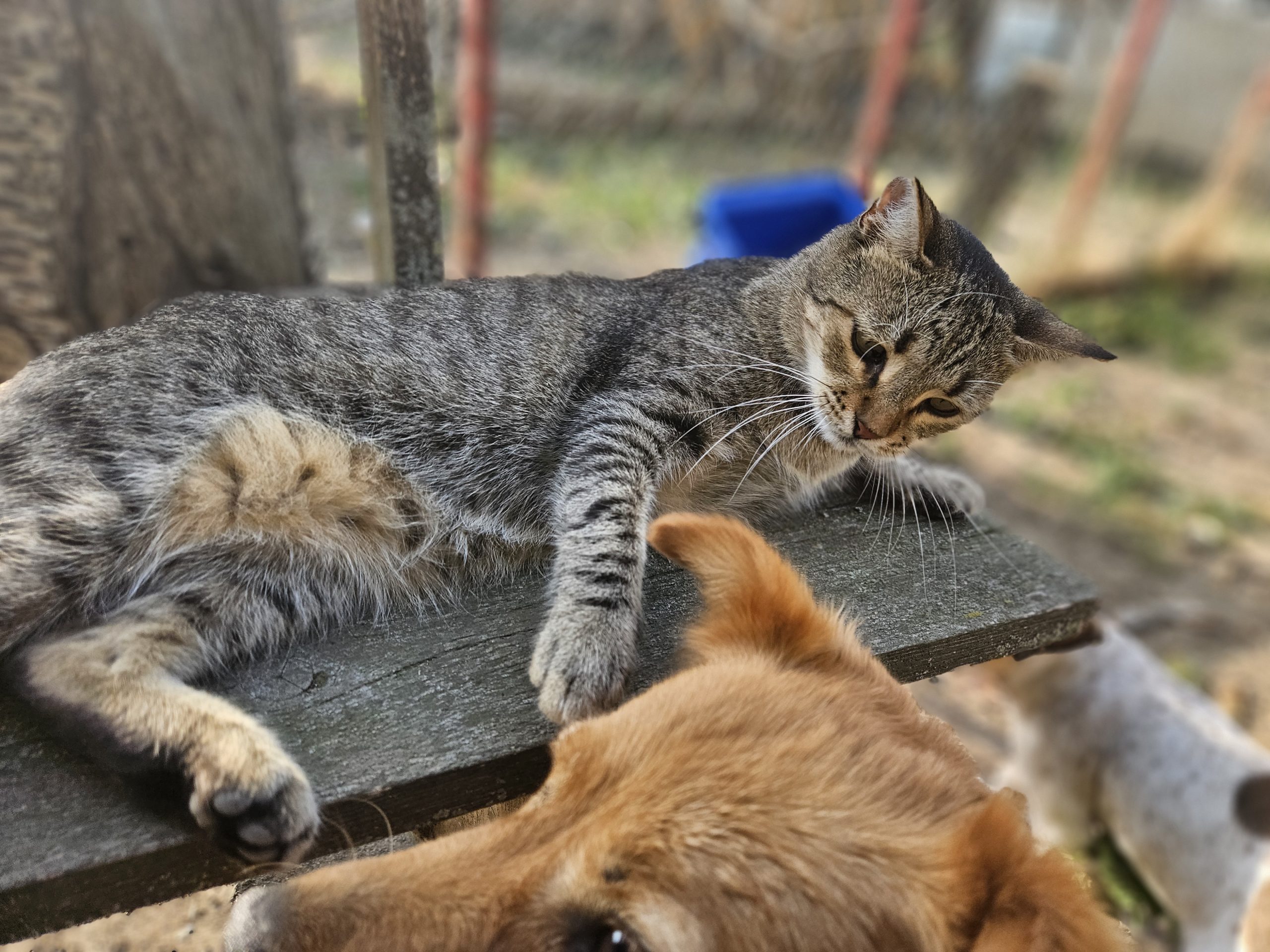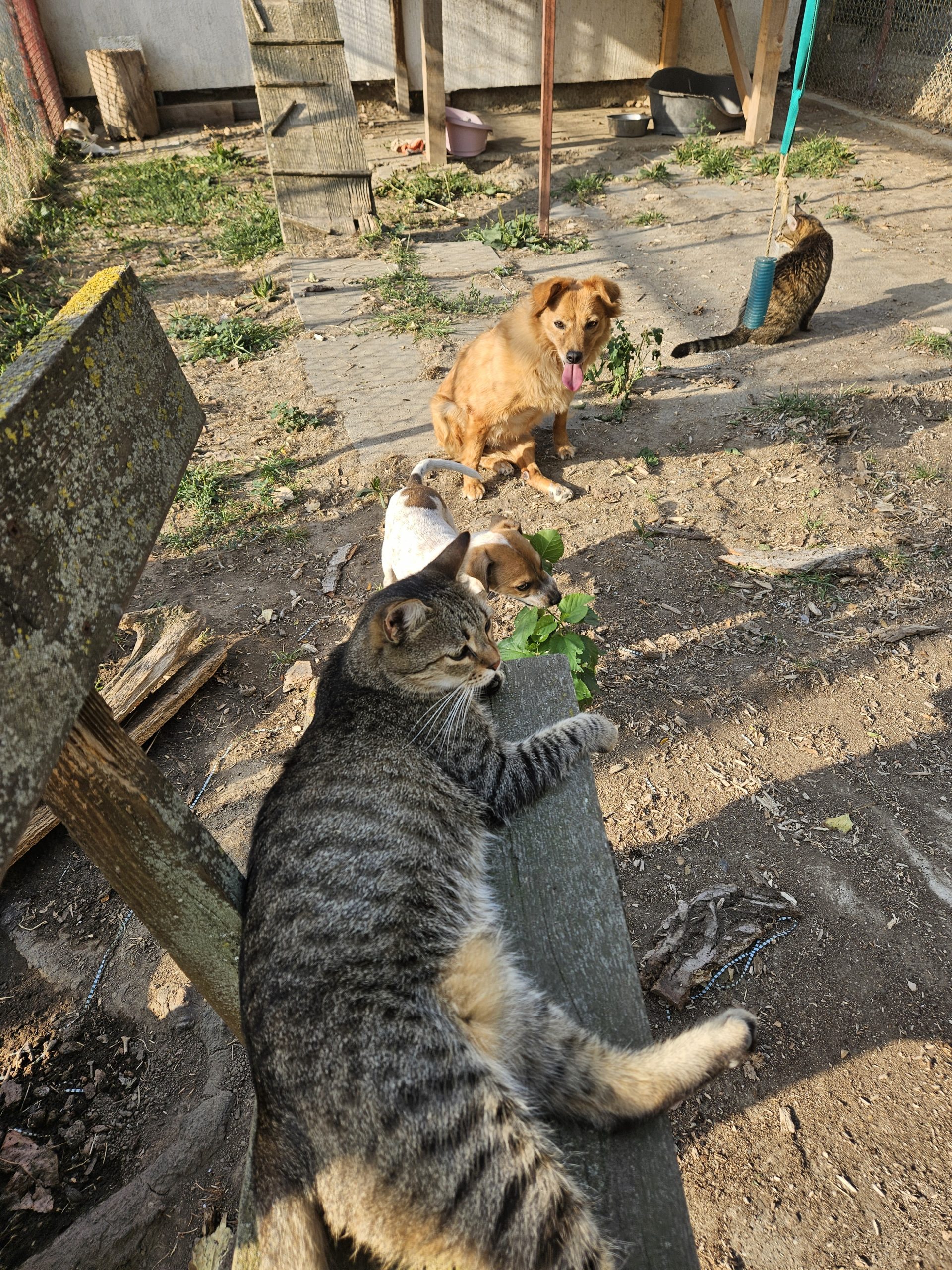 Dass jetzt noch zwei gehandicapte Hündinnen tagsüber im Katzengehege leben, und die Welpenstube für action sorgt, findet Henry ganz wunderbar.