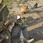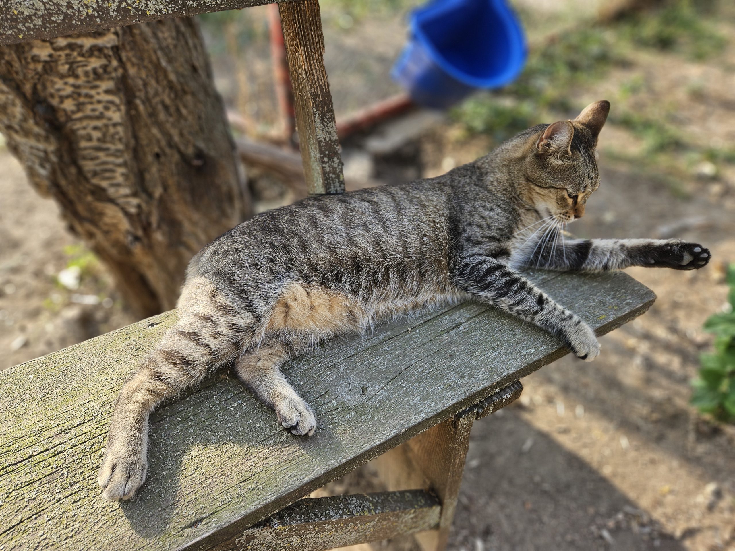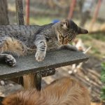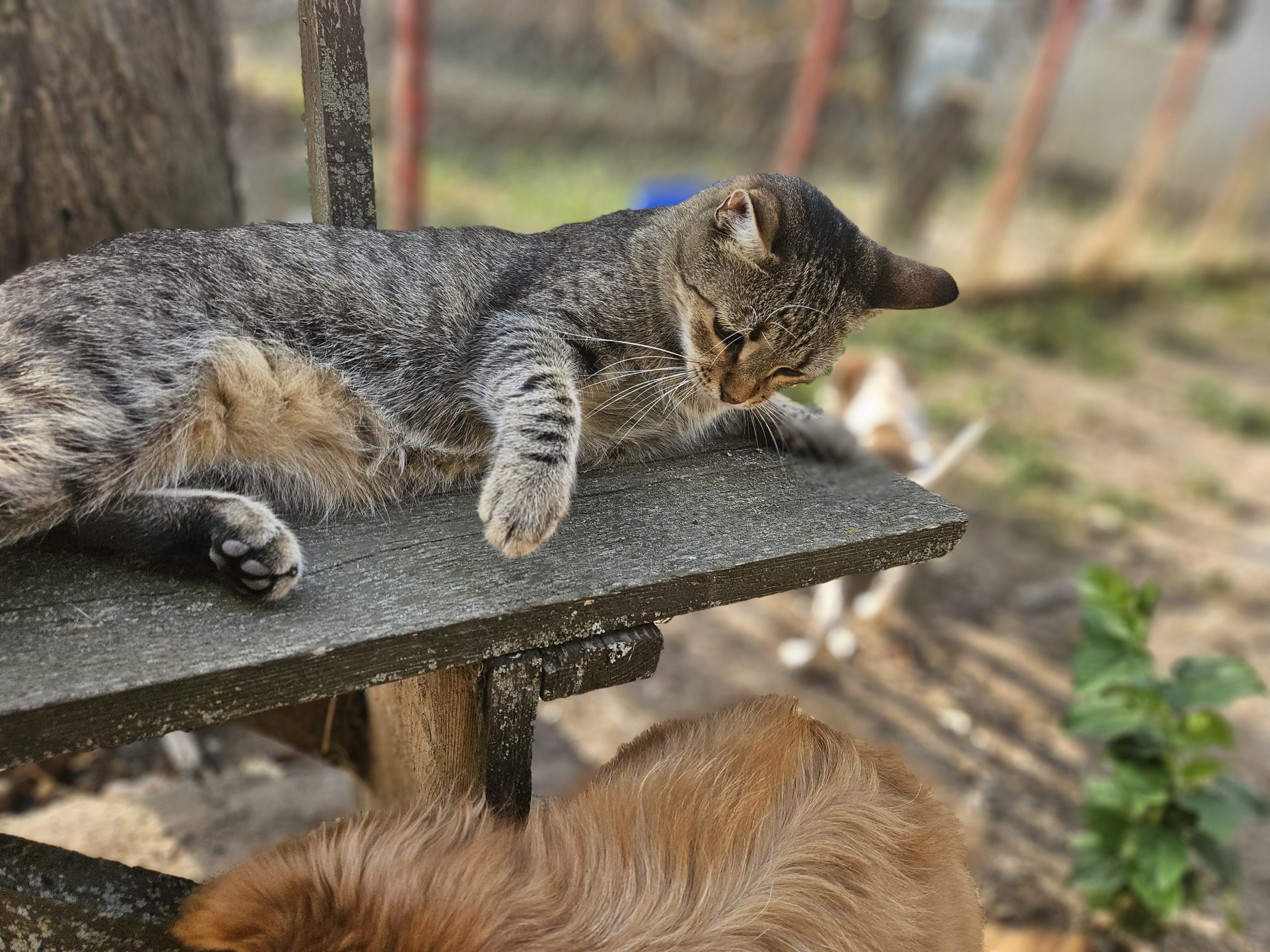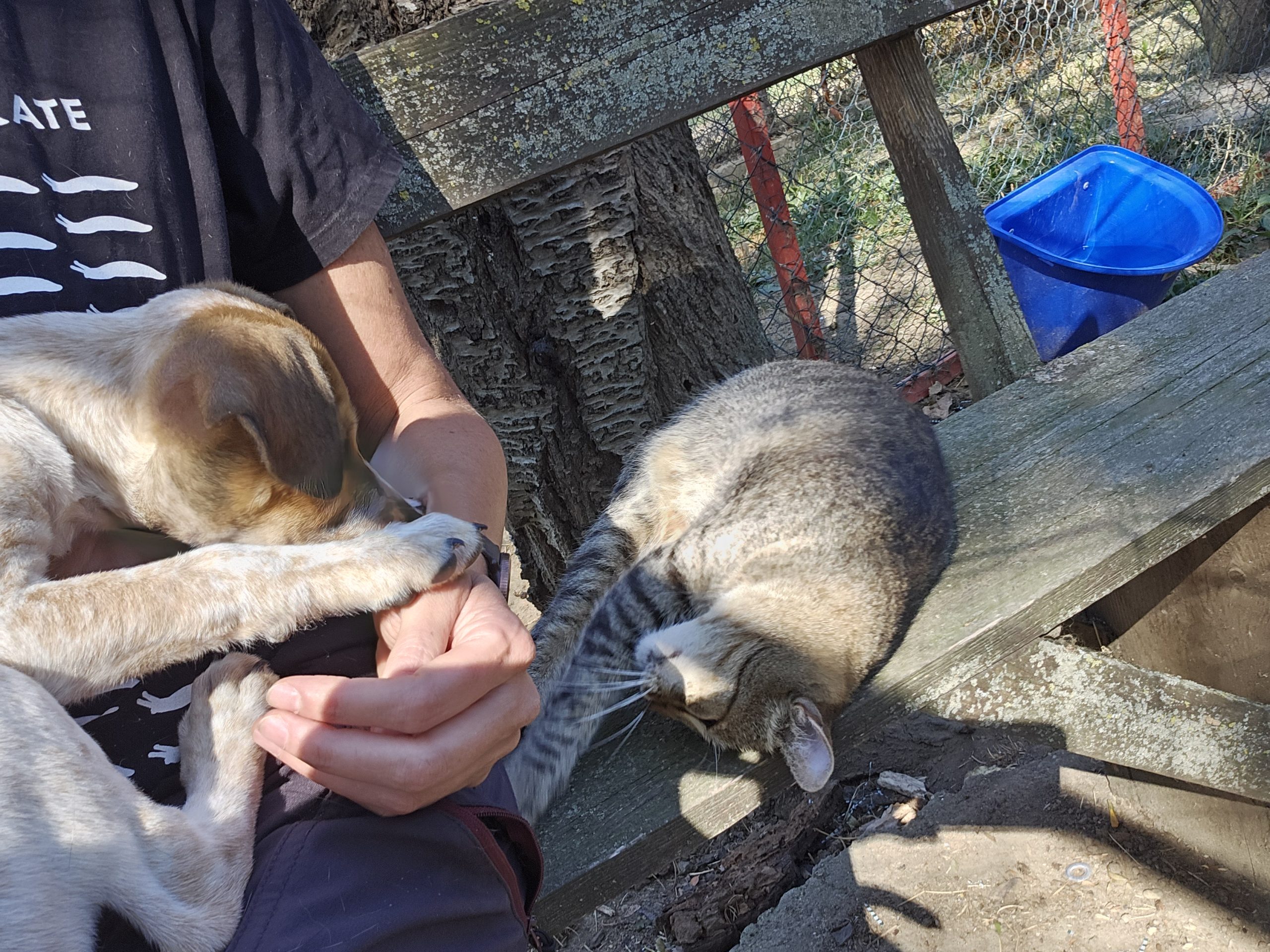 Dass jetzt noch zwei gehandicapte Hündinnen tagsüber im Katzengehege leben, und die Welpenstube für action sorgt, findet Henry ganz wunderbar.