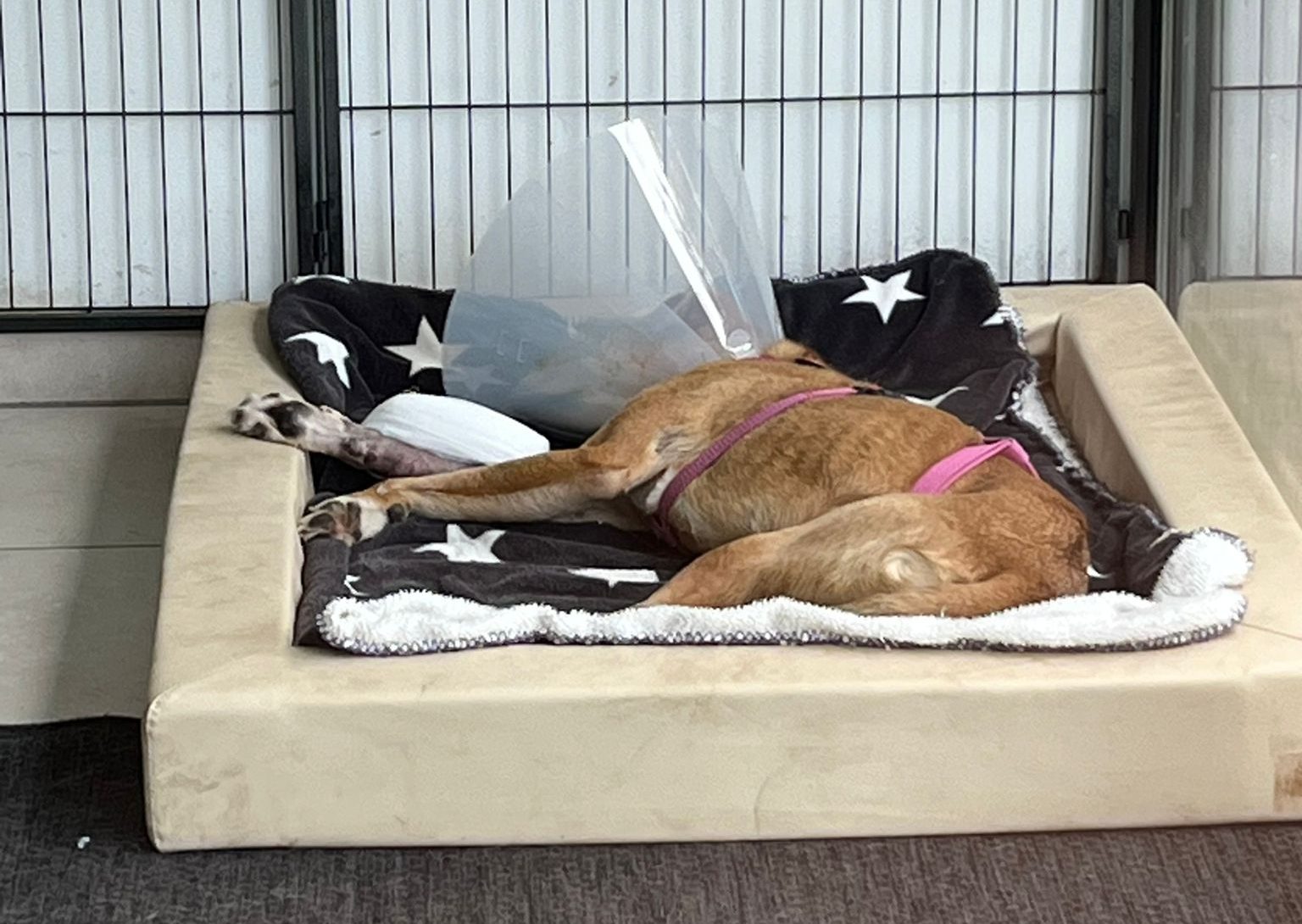 Aurelia sollte auf Pflegestelle in einigen Wochen. Das steht auf der Kippe, sollte sie ihren Vorderlauf verlieren.