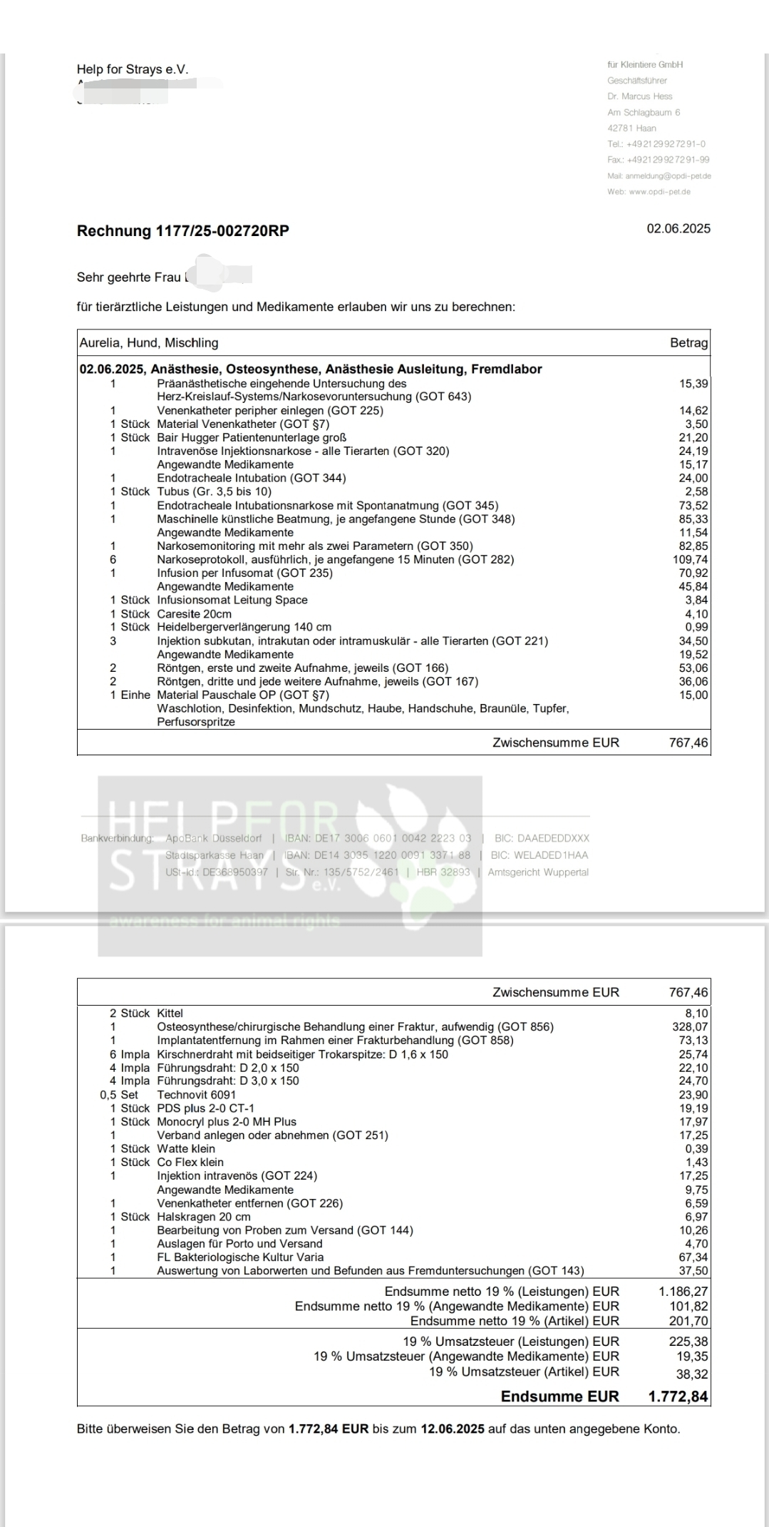 Dank VETO konnten sämtliche Kosten für beide OPs abgedeckt werden.