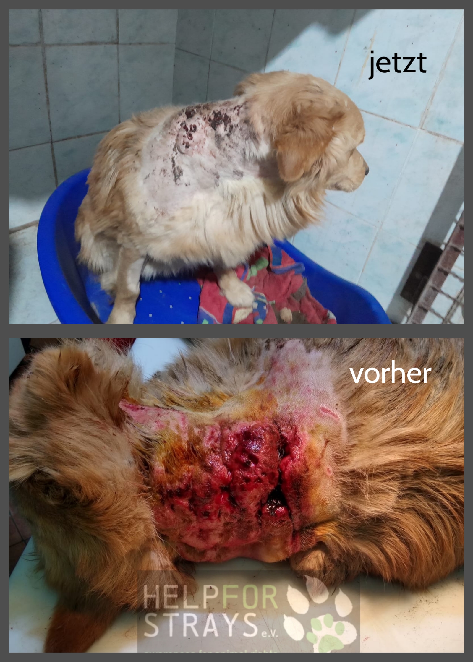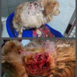 Meda war vor einiger Zeit bereits im Asyl. Einer der anderen beiden Hunde hatte ihn angegriffen, und wirklich schwer verletzt. Das Foto stellen wir euch unten in die Galerie.