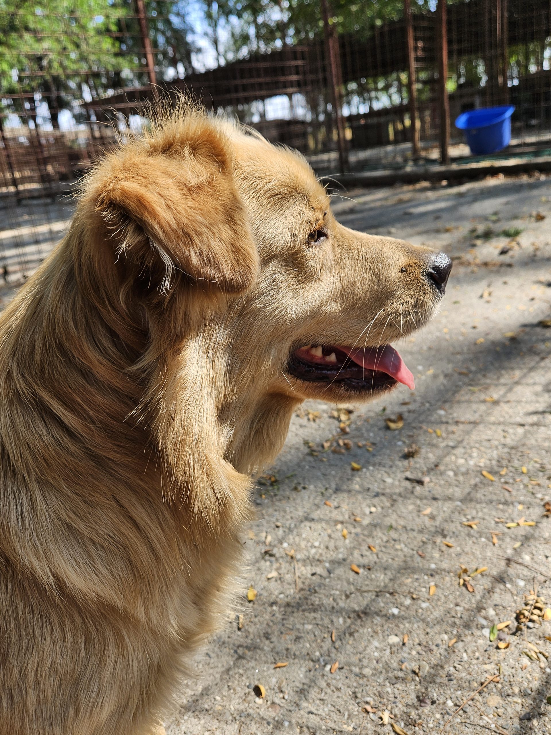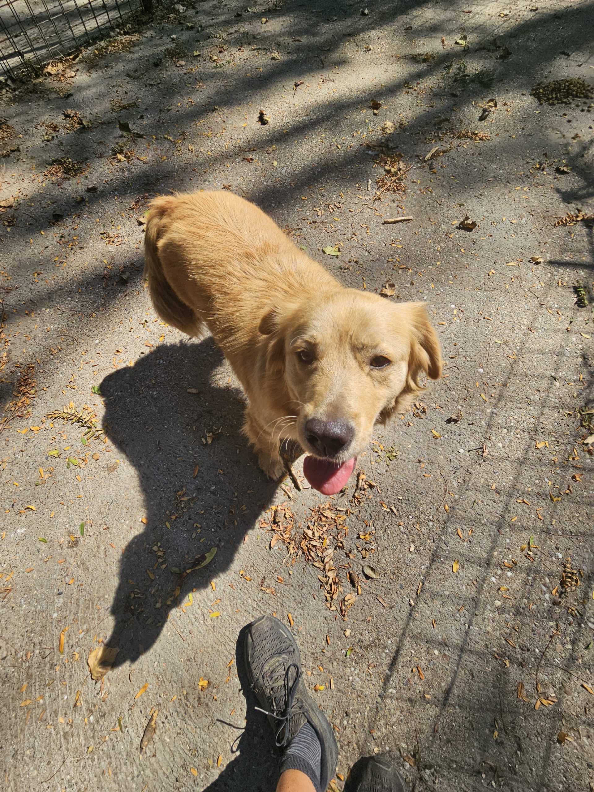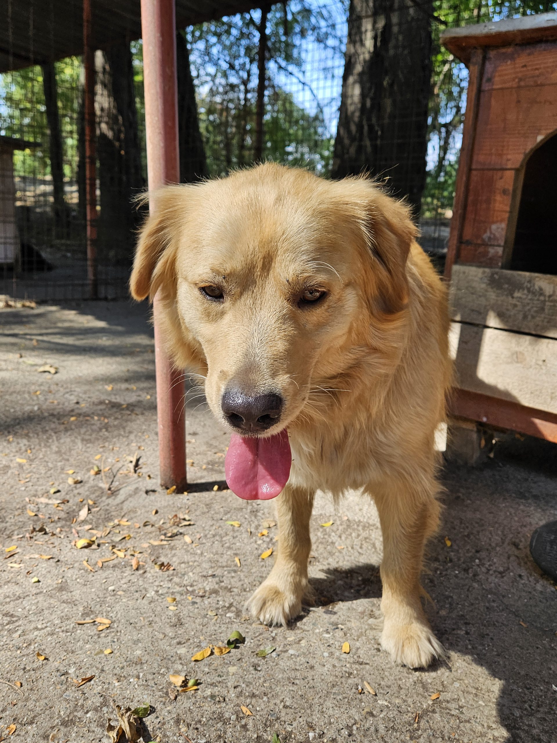 Dass Meda ein Mischling ist, sieht man vor allem an seinem relativ niedrigen Körperbau. Er ist sozusagen ein etwas tiefergelegter Retriever 🙂